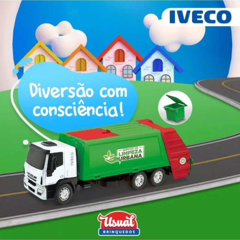 O Caminhão Iveco Tector Coletor de lixo é uma excelente opção para a criança brincar e se divertir, acompanha container de lixo.