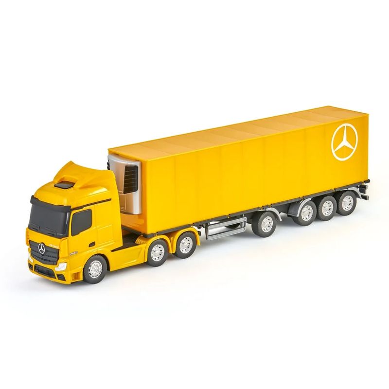Este caminhão miniatura em escala é perfeito para crianças e adultos que apreciam a funcionalidade dos veículos de transporte. O Actros Baú Refrigerado conta com compartimento removível e portas traseiras que se abrem, além de grafismos inspirados nas versões dos caminhões que operam no Brasil.