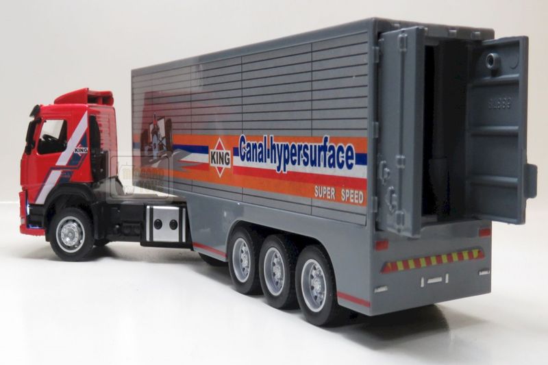 Caminhão Volvo ContainerMarca do produto: California Toys.Coleção: Som e Luz - California Action.Miniatura em Metal com Partes de Plástico.Roda Livre.Emite Som.Abre Compartimento.Luzes Dianteiras.Pneus de Borracha.Fonte de Alimentação: 3 baterias AG13/LR44 1.5V (inclusas).Escala: 1/50 (aproximadamente 18,5 cm de comprimento).
