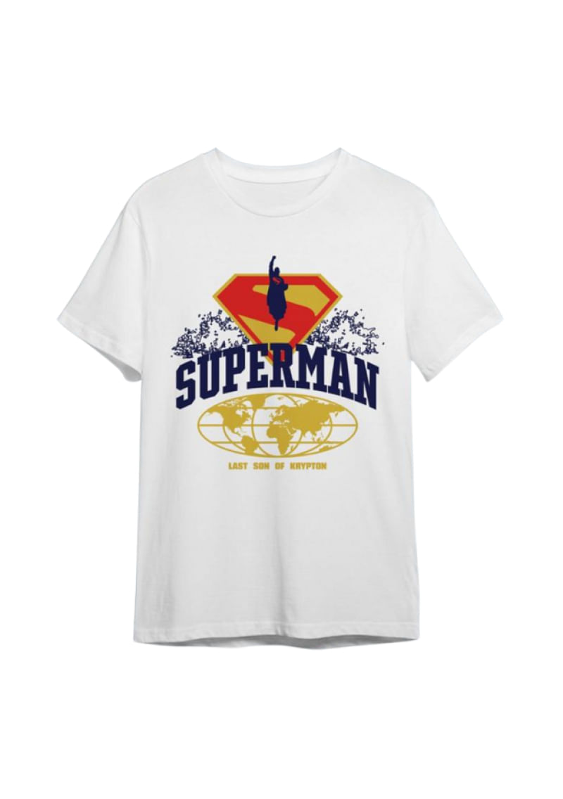 Camiseta Algodão Branca Manga Curta Superman Globo