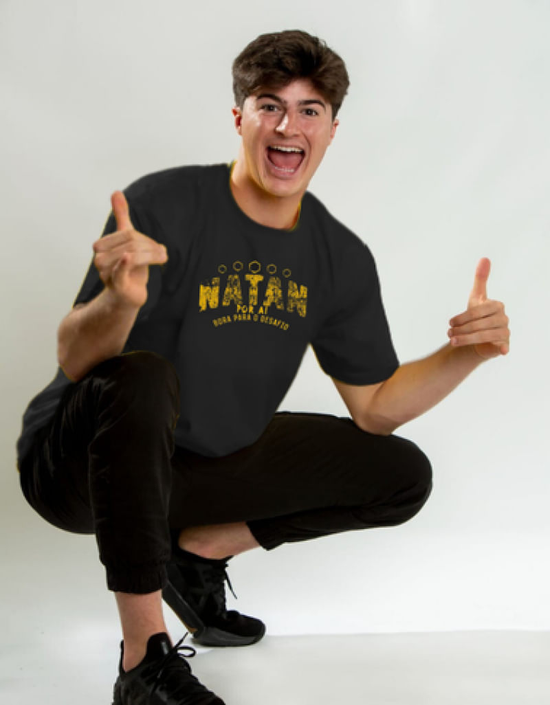Camiseta Algodão Preta Manga Curta Natan Por Aí Desafio