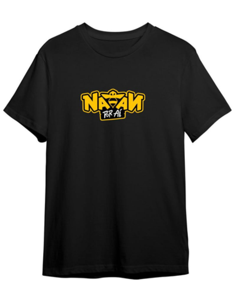 Camiseta Algodão Preta Manga Curta Natan Por Aí Logo