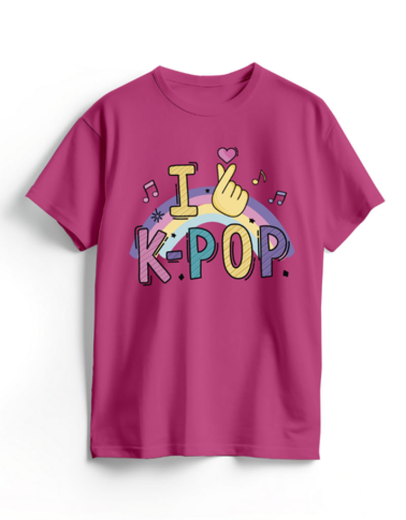 Camiseta Algodão Rosa K-Pop Finger Heart
