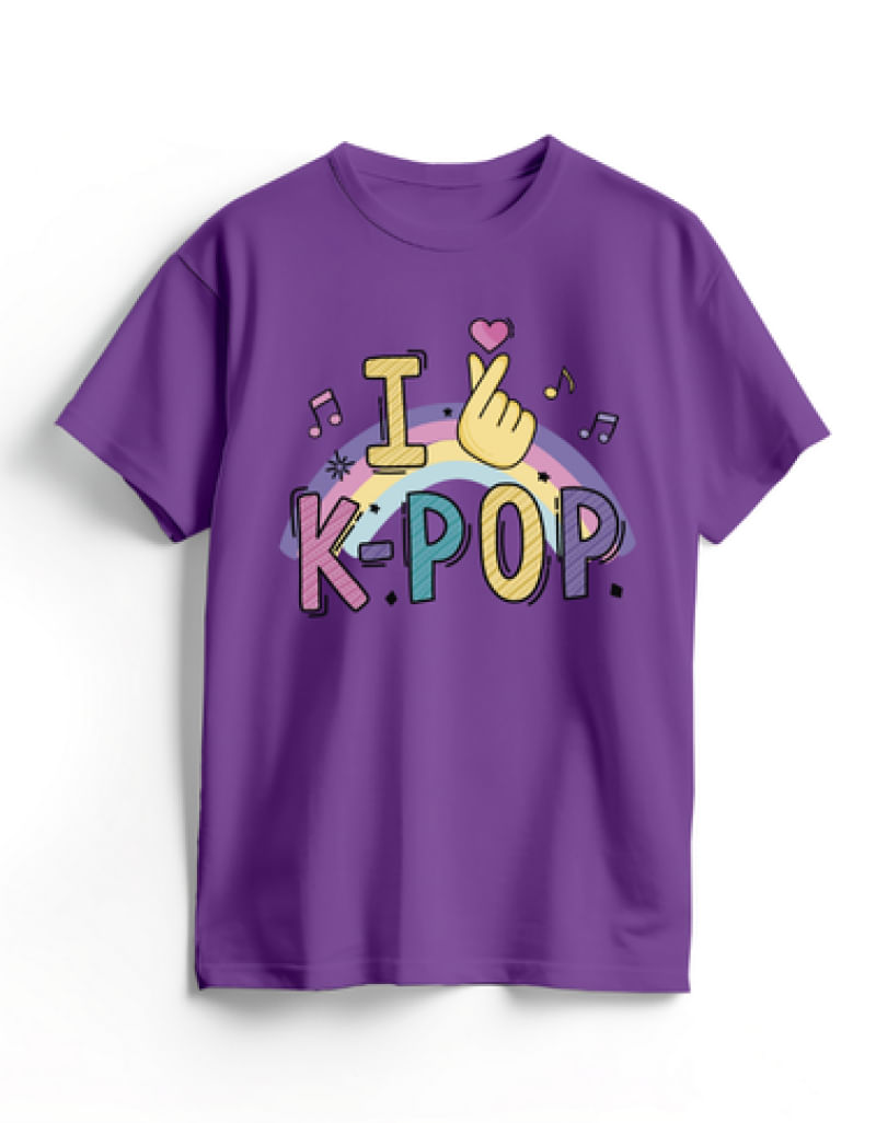 Camiseta Algodão Roxa K-Pop Finger Heart
