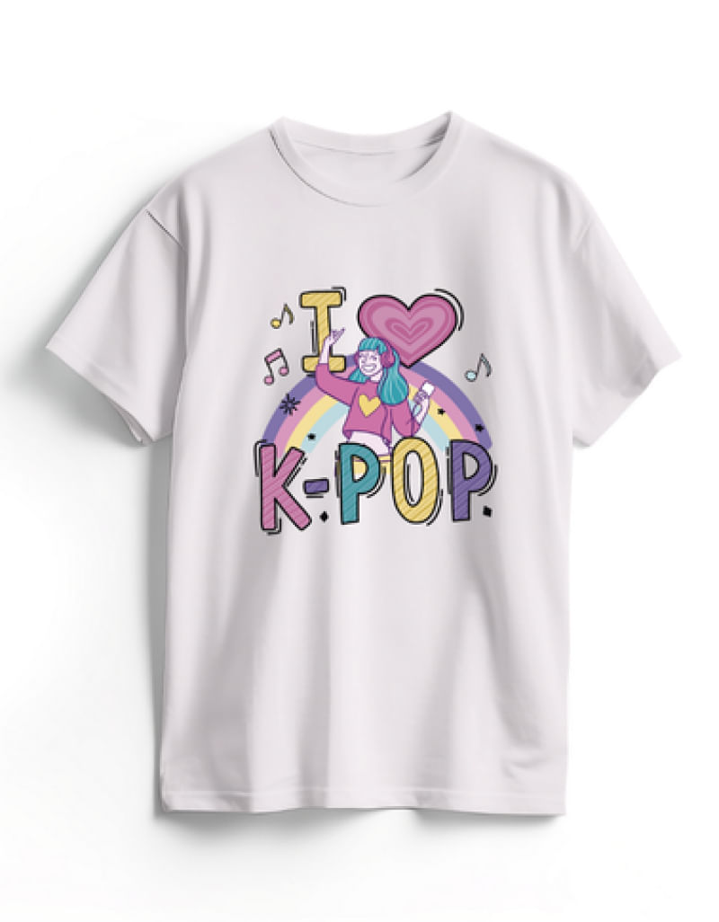 Camiseta de Algodão Branca K-Pop Cute
