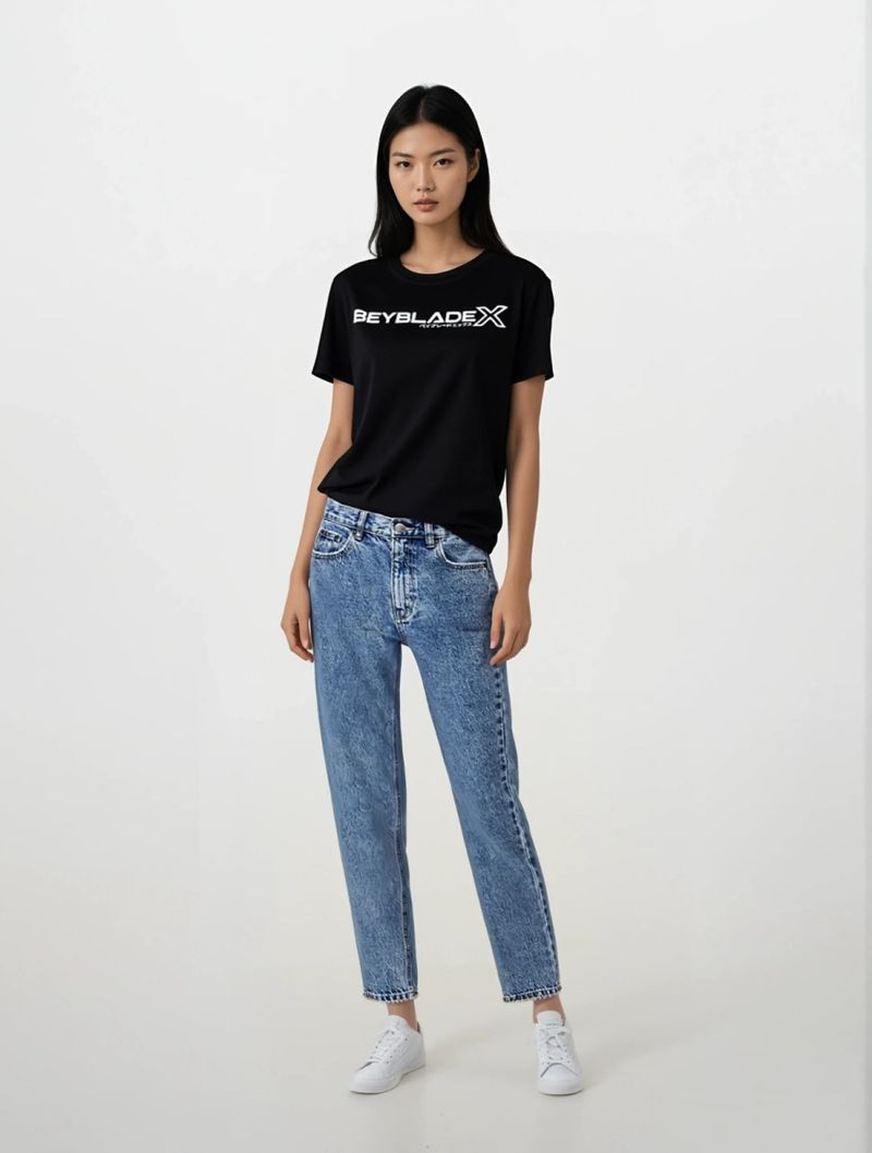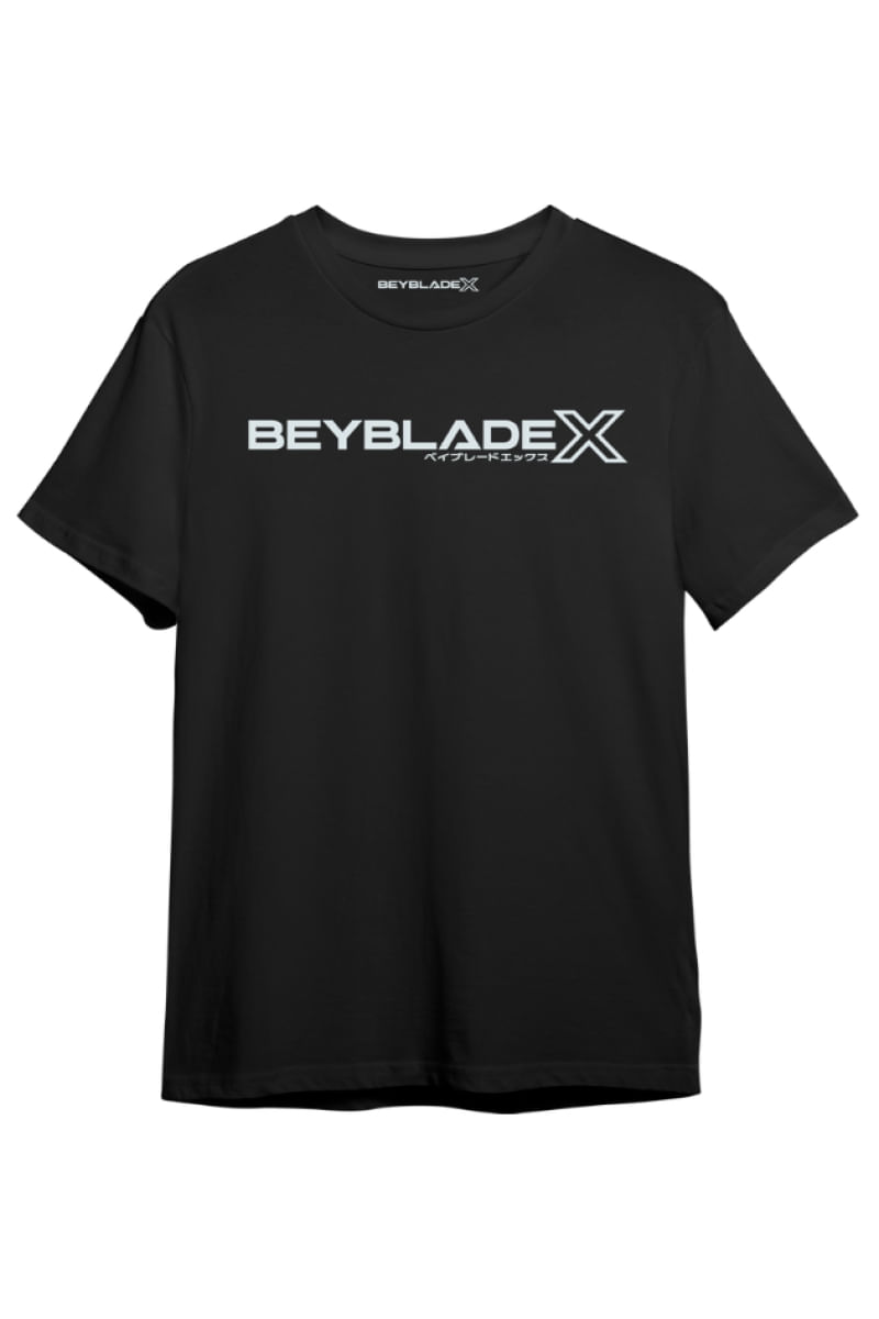 Camiseta de Algodão Preta Manga Curta Beyblade X Logo