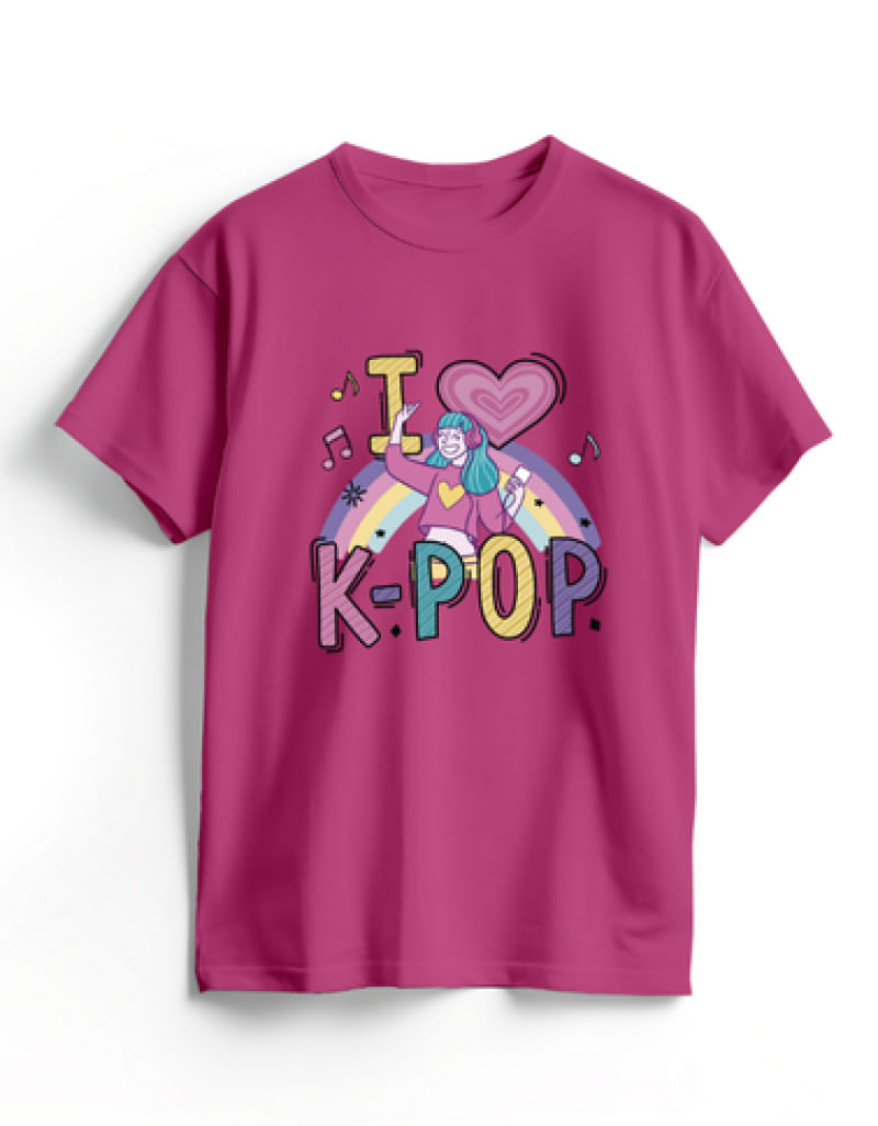 Camiseta de Algodão Rosa K-Pop Cute