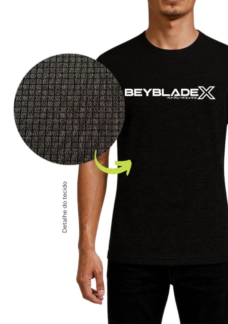 Camiseta inovadora, feita 100% de poliéster de alta qualidade, com sua tecnologia de ponta. Toque suave, respirabilidade e durabilidade. Essa peça une conforto, estilo e inovação. Feita no Brasil. Produto oficial e licenciado de Beyblade X.