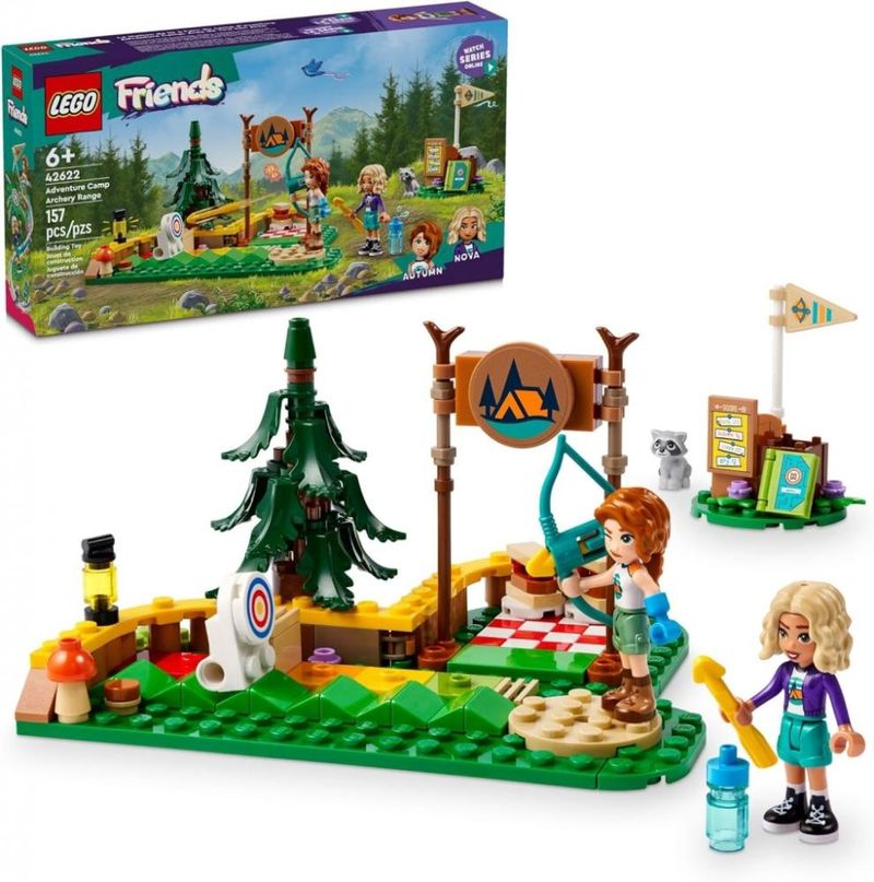 O brinquedo de construção LEGO® Friends Campo de Arco e Flecha do Acampamento de Aventuras (42622) para crianças maiores de 6 anos inclui as minibonecas da Autumn e Nova, um guaxinim e vários acessórios esportivos. As crianças podem encenar tiro ao alvo de verdade com este conjunto eletrizante, e o arco realmente dispara as flechas! Veja o alvo virar quando a flecha o acerta! Há uma escala de dificuldade por cores, então crianças podem mover os personagens mais longe para um desafio maior. Pequenos aventureiros podem criar histórias infinitas com este conjunto de arco e flecha para crianças. A Autumn inclui 2 rostos diferentes para mudar sua expressão quando ela for irar. A Nova recebe o emblema de arco e flecha para seu livro de atividades do acampamento. Depois, as duas relaxam com um sanduíche. Cuidado com o guaxinim arteiro que está querendo uma mordida do lanche das amigas! Este conjunto é uma ótima ideia de presente para crianças e inclui o aplicativo LEGO Builder para uma aventura de construção fácil e intuitiva. Nele, as crianças podem ampliar e girar modelos em 3D, salvar conjuntos e acompanhar seu progresso.\n\nIdade recomendada:5-7 anos;Composição/Material:Plástico;Funciona com pilhas:Não;Brinquedo com luz:Não;Brinquedo com som:Não;Dimensões:13,7x5x27 cm;Peso:0,236 kg;Código de Barras:673419390323;Garantia do Fornecedor:3 Meses contra defeito de fabricação;