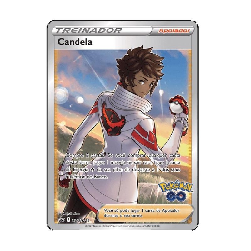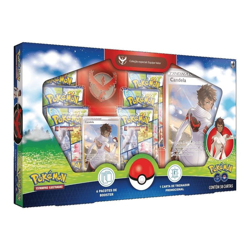 Não há nada melhor do que explorar o mundo ao lado dos seus companheiros de equipe! Mostre orgulhosamente aos outros Treinadores qual é a sua equipe do coração com um broche incrível da Equipe Valor. Nesta coleção, você também encontrará Candela, líder da Equipe Valor, em uma carta extragrande e uma carta de Apoiador jogável que ajuda você a comprar mais cartas e conseguir Energia durante o jogo, além de um monte de pacotes de booster da expansão especial Pokémon GO.