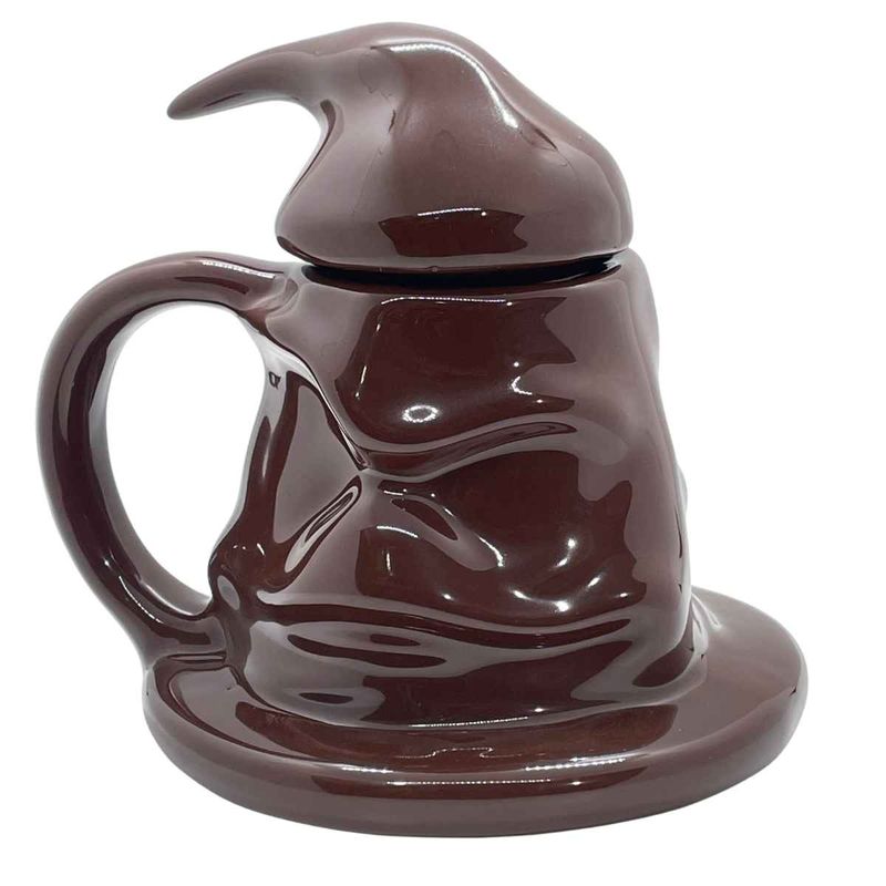 Com um design tridimensional realista, a caneca reproduz fielmente os detalhes do Chapéu Seletor, incluindo suas dobras expressivas e aparência envelhecida, como se tivesse acabado de sair do Salão Principal de Hogwarts. Feita em cerâmica de alta qualidade, ela é resistente e ideal para bebidas quentes como café, chá ou chocolate.
