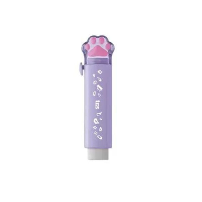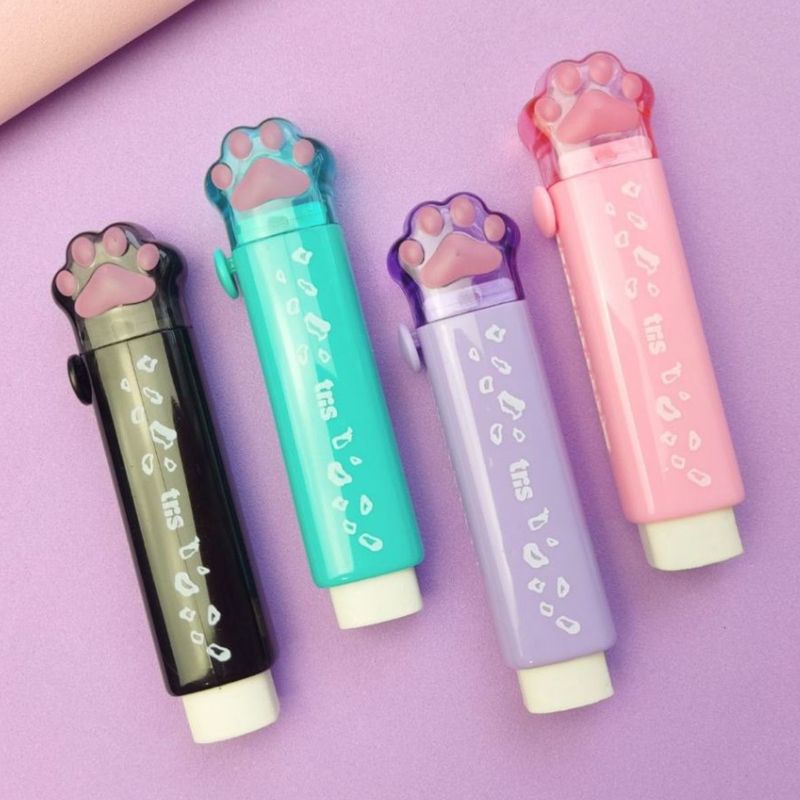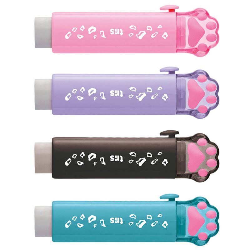 A caneta borracha Fluffy possui mecanismo retrátil, borracha super macia e formato super fofo de patinha.