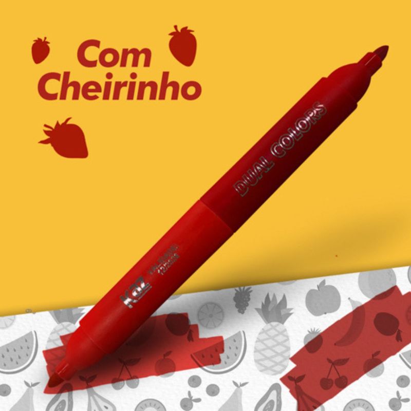 CANETA HIDROGRÁFICA DUAL COLOR 24 CORES COM CHEIRINHO - KZ239 - KAZ