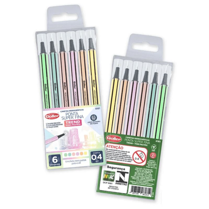 CANETA HIDROGRÁFICA FINE LINER PASTEL 0.4 CONJ 6 CORES - Goller