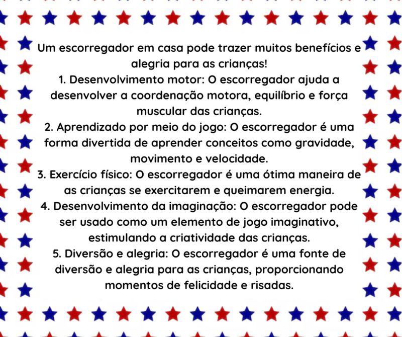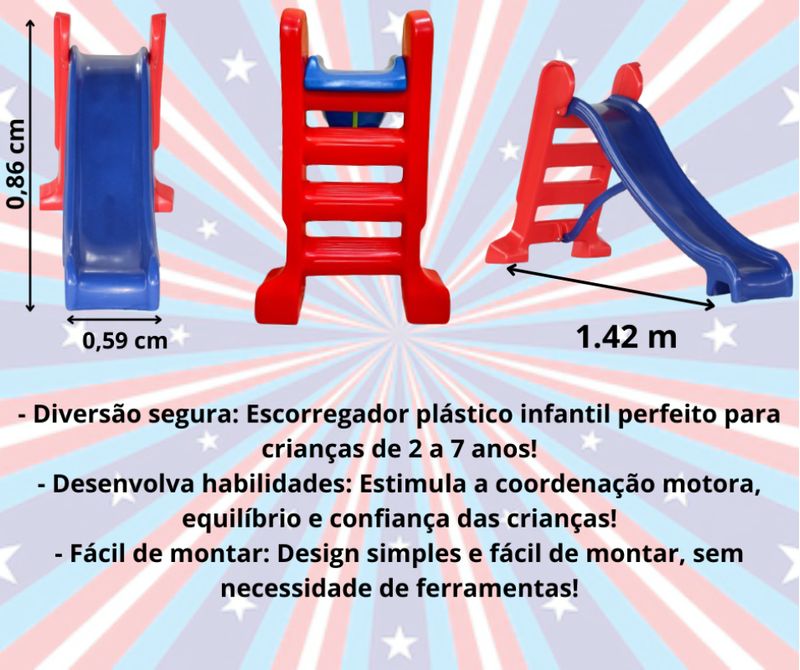 O Escorregador + Piscina de Bolinhas, é a diversão perfeita para crianças de 2 a 4 anos. Com um design colorido e envolvente, esse escorregador infantil apresenta três degraus, permitindo que os pequenos se divirtam enquanto desenvolvem habilidades motoras. Fabricado em plástico de alta qualidade, oferece durabilidade e segurança, com degraus antiderrapantes que garantem um uso seguro. É ideal para garantir horas de brincadeiras encantadoras, promovendo a socialização entre crianças.A piscina de bolinhas complementa a experiência, proporcionando um espaço seguro e divertido para saltar e brincar. Este conjunto é perfeito para estimular a imaginação e o movimento, essencial para o desenvolvimento saudável das crianças.