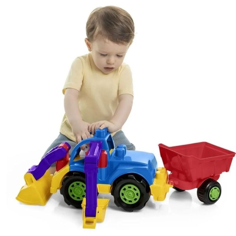 Carrinho Rodadinhos Blocks Completo -trator/truck - Ta Te Ti Brinquedo Infantil Rodadinhos Blocks Completo - Tateti 879 Descrição : Para brincar lá fora O caminhão é completo para carregar e transportar terra, areia ou pedrinhas pra lá e pra cá. Ele vem com uma caçamba removível com rodinhas, acompanha uma concha e um carregador que se encaixam em diferentes posições do caminhão. E o Sr. Motorista também pode acompanhar o carregamento, pois ele vem com um formato que desencaixa da cabine. O Rodadinhos Blocks Completo pode se transformar também em Truck ou Trator, é só escolher qual deles fará parte da brincadeira e desencaixar ou encaixar as peças. OBS : Brinquedo vem com cores SORTIDAS , Imagens somente ilustrativas Contém : 1 Rodadinho com Caçamba, Escavadeira, Braço Articulado e Reboque 1 Boneco Material : Plástico Tamanho do Produto : 48,5 x 19,7 x 26,7cm Marca : Tateti Aprovado pelo INMETRO. INMETRO 001 571/2019 - OCP0098