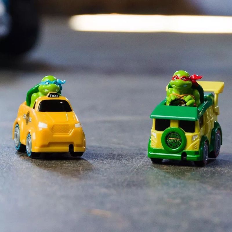 Estes miniveículos de corda são perfeitos para os fãs das Tartarugas Ninja que adoram brincadeiras cheias de velocidade.