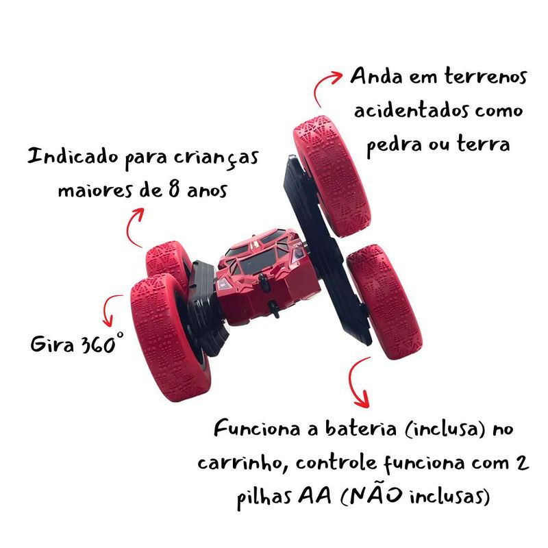 Ideal para aventuras ao ar livre, o carrinho possui estrutura resistente e rodas robustas que enfrentam terrenos difíceis com facilidade. E o melhor: tudo isso controlado à distância com um controle remoto intuitivo, que coloca o poder da velocidade e da acrobacia nas suas mãos.