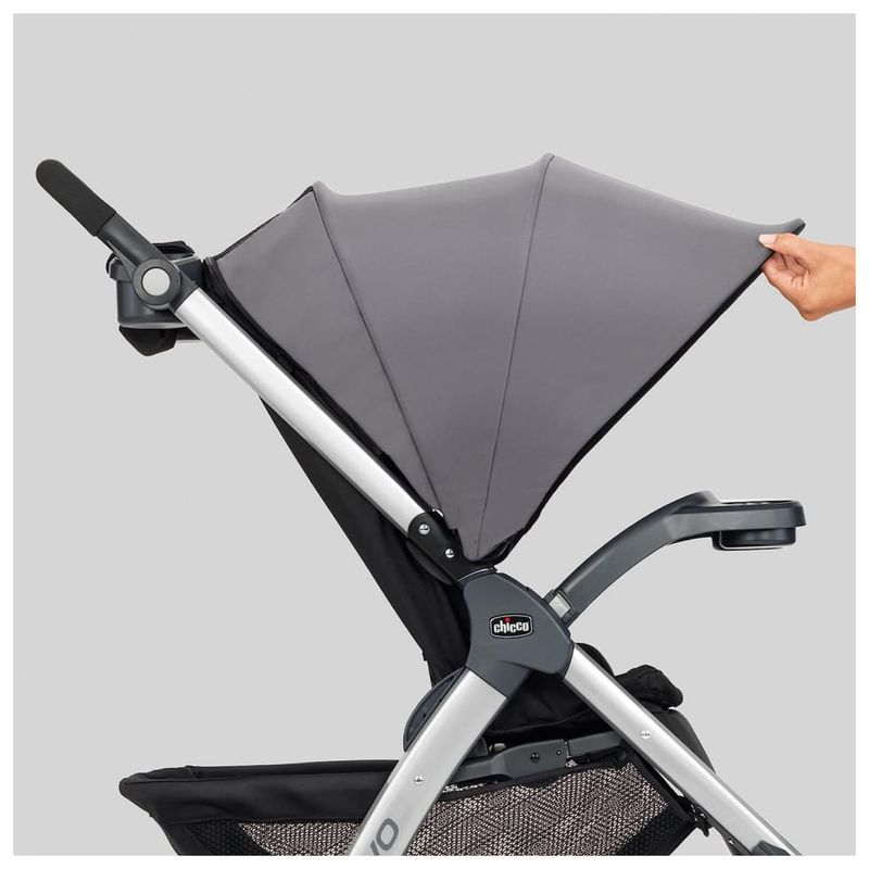 Para maior conforto infantil, o Chicco Bravo possui um assento reclinável de uma mão e várias posições, uma conveniente bandeja infantil com porta copos, cesta de zenamento e uma grande, Cobertura UPF 50 com janela de malha peek a boo para proteção contra os elementos nos três modos.