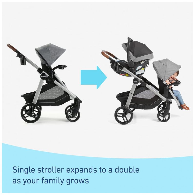 O carrinho Graco Modes Nest2Grow cresce de um único para um carrinho duplo com a adição de um assento de carro infantil, berço ou segundo assento todos vendidos separadamente. É o único carrinho que você precisa para uma família em crescimento, com mais de 15 maneiras de andar.