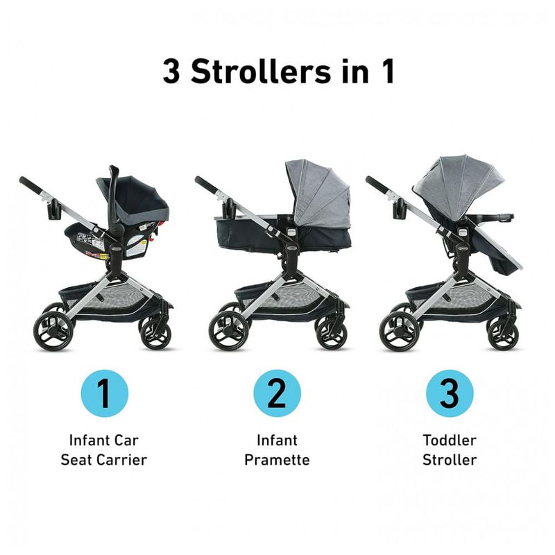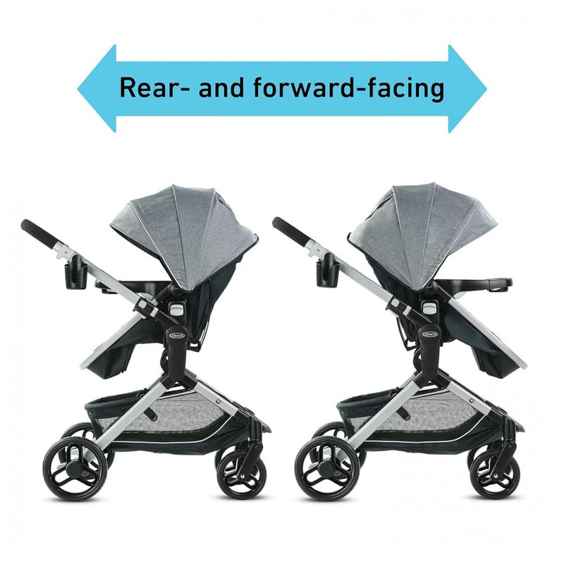 Graco Modes Nest Travel System traz o bebê mais perto do que nunca. Eleve o assento Slide2Me de altura ajustável ou a cadeirinha infantil para aproximar seu bebê para sorrisos face a face nos passeios diários. Este carrinho 3 em 1 pode ser como um porta assento infantil, pramette infantil e carrinho de criança. Inclui o assento de carro infantil Graco SnugRide 35 Lite Elite, voltado para trás de 2 a 15 kg. Ajuste o assento do carrinho para qualquer uma das 3 posições de altura e escolha o modo voltado para os pais ou voltado para a frente.