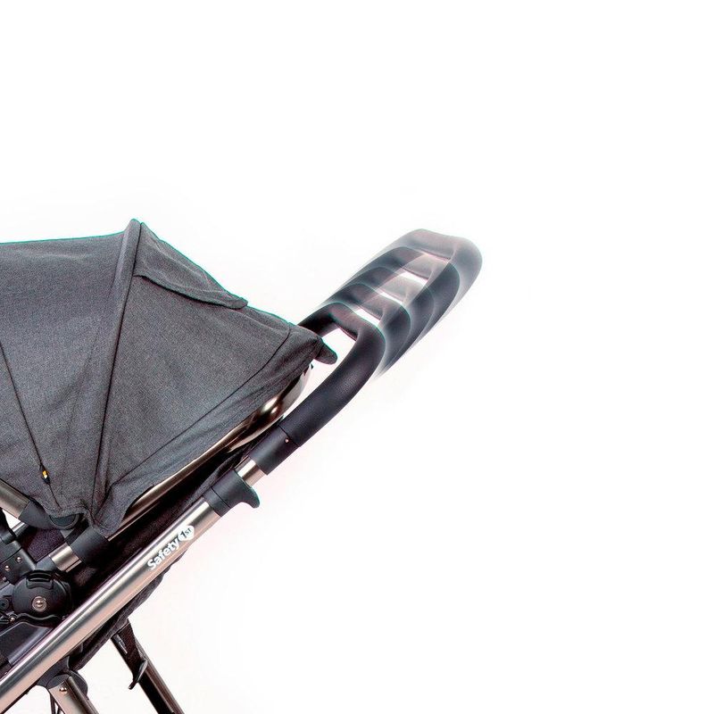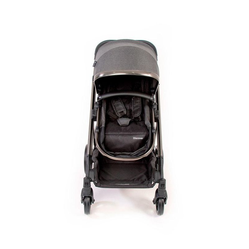 O carrinho possui estrutura leve em alumínio, com acabamento cromado, moderno e atual, revestimento especial na manopla e barra frontal, capota ajustável, ampla, com proteção solar UV50+ e visor, assento reversível, pode ser usado virado para os pais ou para o mundo, acompanhando o crescimento do bebê, facilmente converte-se em assento de passeio, reclinável em 4 posições, encosto ajustável em 2 posições, o diferencial do apoio dos pés, emborrachado, ajustável em 7 posições, que proporciona um maior conforto para os maiorzinhos e praticidade para os pais, cinto de 5 pontos com ajuste de largura e 3 posições de altura, manopla com 5 posições de altura, cesto espaçoso, rodas traseiras grandes, amortecedores, freio centralizado, em um único ponto, com indicador de travamento, controle de giro 360° nas rodas dianteiras, muito mais conforto para o bebê e para dirigir. Fechamento rápido, que pode ser feito com ou sem o assento.