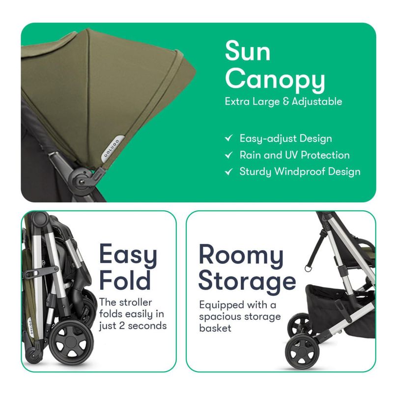 O conforto e a segurança do seu filho são fundamentais e o carrinho Colugo Compact oferece ambos. Com seu assento reclinável multiposições e capota UPF 50, seu filho ficará aconchegante e protegido dos raios nocivos do sol. O carrinho também possui arnês de cinco pontos e suporte ajustável para panturrilha, proporcionando maior segurança e comodidade. Além disso, a generosa cesta de armazenamento permite transportar todos os itens essenciais com facilidade.