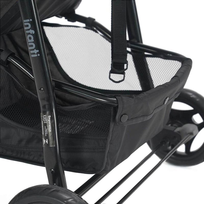 CARRINHO DE BEBÊ INFANTI BREEZE Carrinho muito leve e confortável. 3 rodas, barra frontal, capota com visor, aba de sol extra e proteção UV50+. Inclinação tipo berço e permite elevar o apoio de pés. O Breeze da Infanti veio atender aos pais que desejam ter um carrinho bonito, confortável e muito prático. O conforto para o bebê é garantido pelo revestimento acolchoado do assento com a praticidade de ser facilmente retirado, quando precisar lavar. Possui inclinação total do encosto, em múltiplas posições e apoio dos pés que pode ser elevado para uma posição berço ou abaixado conforme o bebê cresce. Tecido em cores modernas e detalhes de acabamento deixam o visual do carrinho especialmente elegante, afinal, ter um carrinho bonito também é importante. Para os pais, a opção de 3 rodas grandes e o formato da manopla, que permite dirigir com uma única mão, facilitam o passeio pelas ruas. O cesto porta-objetos é espaçoso e de fácil acesso. O Breeze possui freio de acionamento integrado, pressione apenas um dos lados e pronto. Proteger o bebê do vento e do sol é trabalho para a capota ampla, com aba extra, visor para podermos espiar o interior do carrinho e fator UV50+. Barra de proteção frontal removível e cinto de 5 pontos, com protetores acolchoados, ajuste de altura e largura, para acompanhar o crescimento do seu filho. Acompanha adaptadores para encaixe do bebê conforto Zion, vendido separadamente ou incluso na opção TS. Uso do nascimento aos 15 kg