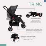 O Trino é leve, compacto e acolhedor, com fechamento prático e estrutura que acompanha cada fase do seu bebê desde o primeiro dia.