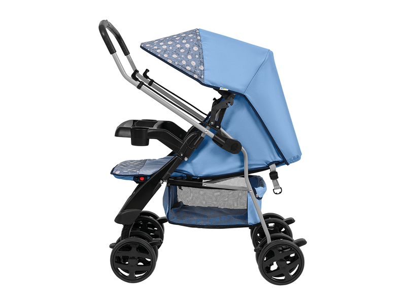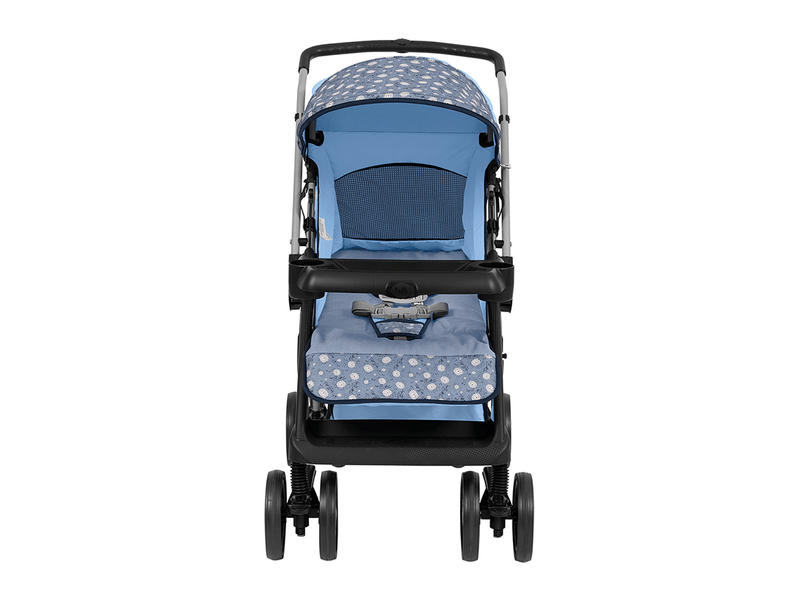 Buscando trazer uma proposta alegre para os produtos da marca, o Carrinho Joy foi desenvolvido com tecidos em tons pastéis e estampas mais lúdicas.