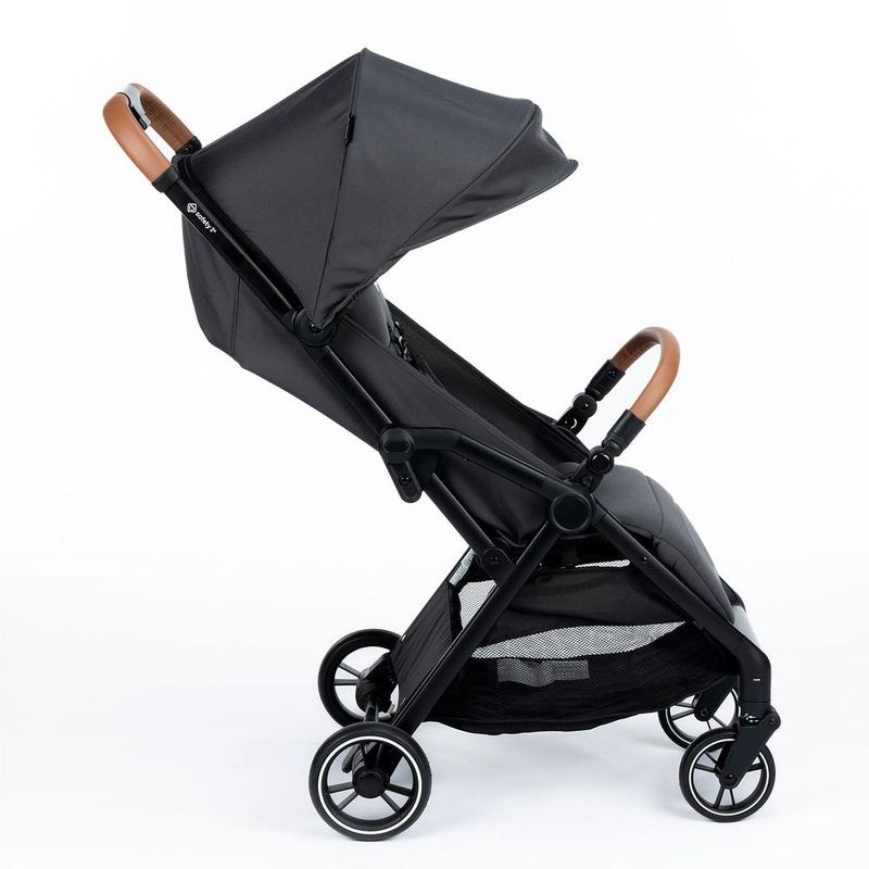 - Manopla e barra frontal do carrinho revestidas com tecido especial, confortável e com um toque de estilo.