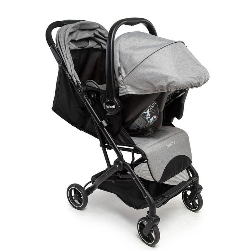 Compacto, acolhedor e pronto para os primeiros passeios, o Nino Travel System une carrinho e bebê conforto em um só conjunto.