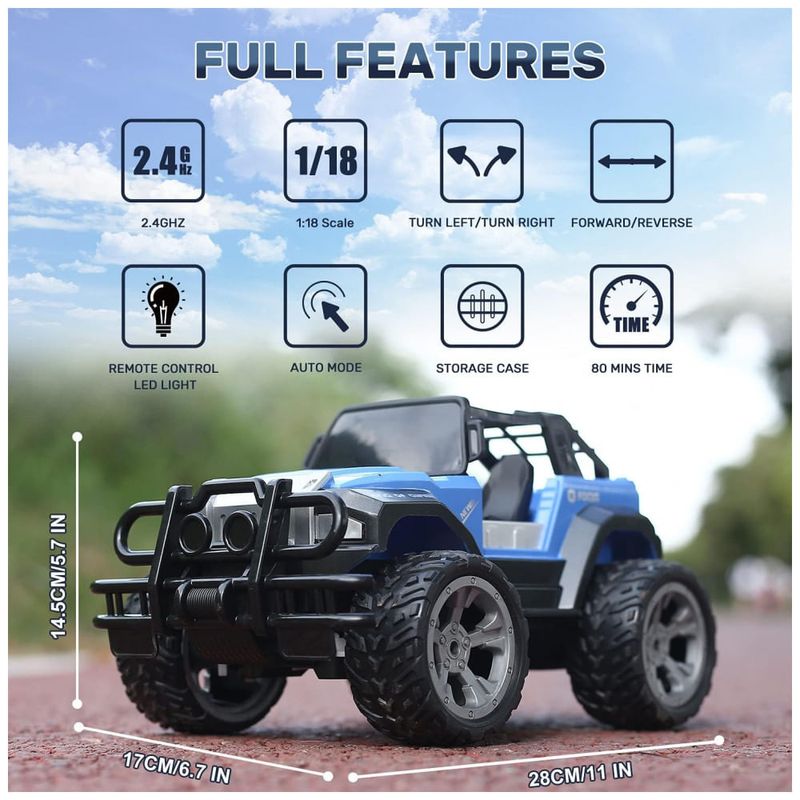 Controle aprimorado e versatilidade: equipado com uma frequência de 2,4 GHz, este carro de controle remoto fornece controle preciso e responsivo. Suas capacidades off road e design todo o terreno permitem conquistar várias paisagens, incluindo grama, cascalho, areia e muito mais.