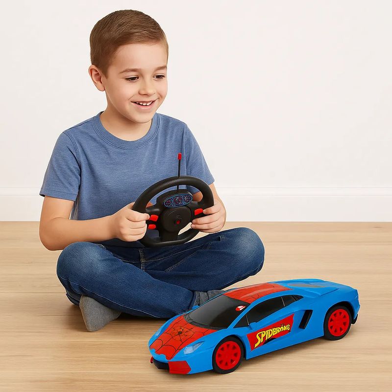 O Carrinho de Controle Remoto 7 Funções Homem-Aranha Webcontrol da Candide é a escolha perfeita para crianças que adoram velocidade e o universo dos heróis. Com volante de controle gravitacional e pedais para acelerar e dar ré, a brincadeira se torna ainda mais emocionante e realista. Além do design inspirado no icônico Homem-Aranha, o veículo garante diversão cheia de aventura e ação, estimulando a imaginação e a coordenação motora dos pequenos. Acompanha bateria recarregável inclusa, permitindo que a diversão comece sem demora e dure muito mais tempo.