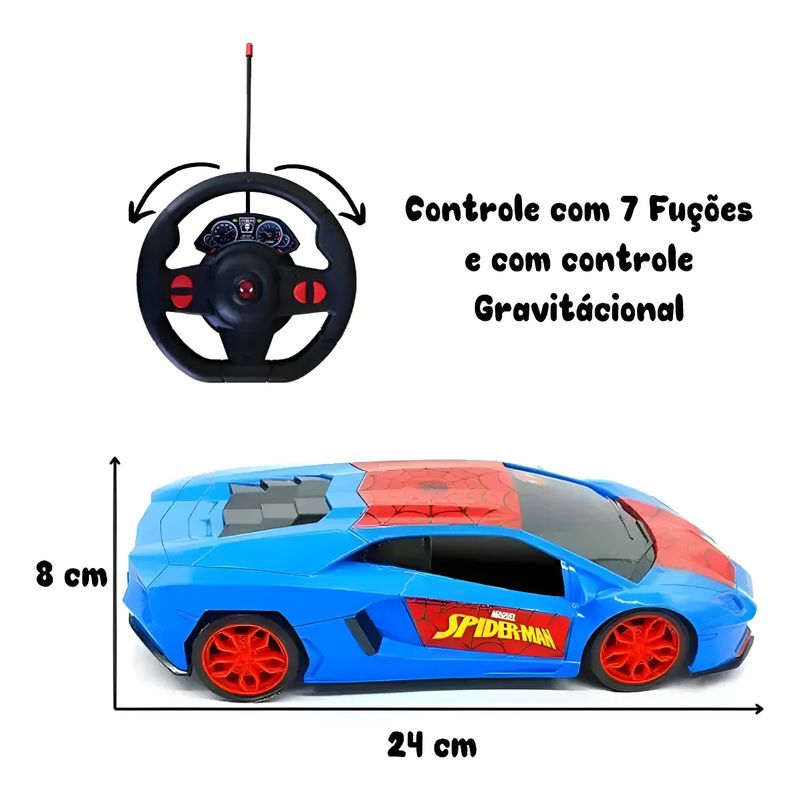 CARRINHO DE CONTROLE REMOTO HOMEM ARANHA (BATERIA RECARREGÁVEL INCLUSA) - CANDIDE