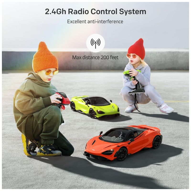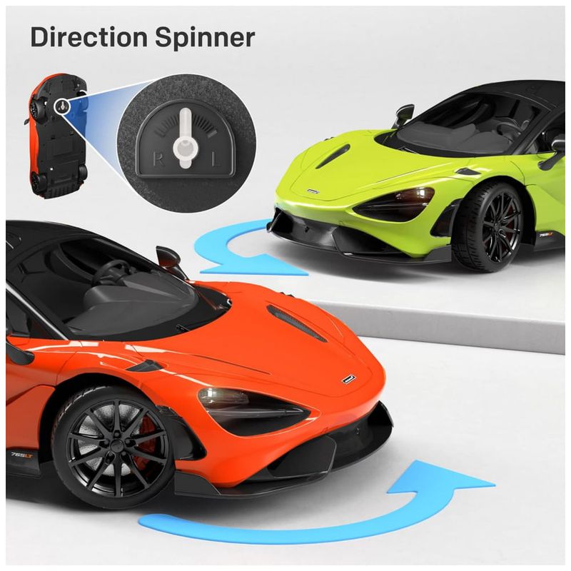 Nosso carro de brinquedo McLaren possui uma escala de 1, 12 e uma carroceria leve, porém robusta, construída com materiais premium e tinta spray de longa duração. Sua carroceria aerodinâmica e linhas estéticas conferem ao carro elegância e velocidade, alcançando uma velocidade máxima de 12 km, h.