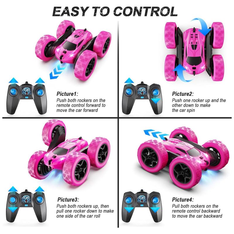 O Carrinho de Acrobacias RC da QUNREDA foi atualizado com módulos de bateria recarregáveis, proporcionando 50 minutos de diversão com duas baterias. Fácil de controlar, oferece 9 acrobacias diferentes e alcance de 50 metros. Com faróis vermelhos e pneus duráveis, pode ser usado tanto dentro de casa quanto ao ar livre. Este pacote inclui 1 Carro RC, 1 controle remoto, 2 baterias recarregáveis, 2 pilhas AA, 1 cabo de carregamento, 1 chave de fenda e 1 manual de instruções. O presente perfeito para o Natal, Halloween ou aniversário de meninos e meninas!