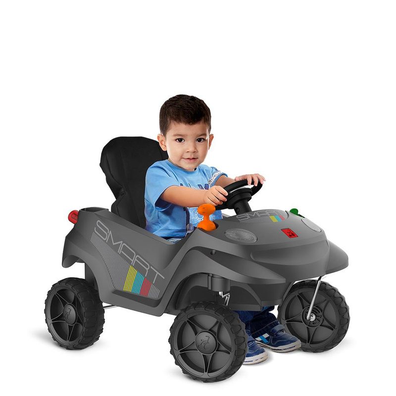 O carro de passeio mais completo da categoria com diversas funções! O Smart é seguro, confortável, inteligente e permite a utilização do adulto e a diversão da criança. FUNÇÃO PASSEIO: O adulto conduz o Smart como um carro de passeio. DUPLA FUNÇÃO ANDADOR (Sentado): Recuando o assoalho, a criança impulsiona o Smart com os pés para qualquer direção. DUPLA FUNÇÃO ANDADOR (Em Pé): Com a supervisão de um adulto, o Smart permite que a criança segure a haste, estimulando o equilíbrio e a coordenação motora nos primeiros passos. Freio traseiro de segurança. Assento acolchoado e reclinável com três posições. Cinto de segurança de três pontos. Haste removível com suporte para bolsa/ sacola. Capota articulável, retrátil e removível. Piso retrátil que converte rapidamente o brinquedo nas funções PASSEIO e PASSO-A-PASSO. Rodas em E.V.A que facilitam a condução do carrinho e proporcionam um deslocamento suave e sem ruído. Rodas dianteiras com giro de 360°. Suporte para garrafa d'água, mamadeira ou squeeze e celular (na alça da haste). Volante com chip sonoro Idade: +9 meses. Peso máximo suportado: 35 kg. NUMERO DO REGISTRO INMETRO: 003840/2021 OCP: 0061 *A Marca SMART é destinada única e exclusivamente ao público infantil.