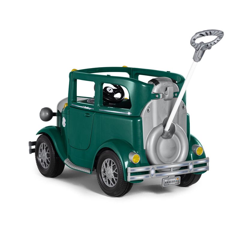 Ele é dois em um, para passear e pedalar, vem com cinto de segurança, empurrador e proteções laterais, para garantir a segurança dos pequenos.