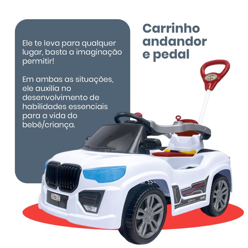 Com pedal reforçado com eixo e corrente de aço, rodas antiderrapantes, e detalhes como buzina divertida, o BM Car é uma verdadeira mini aventura sobre rodas!