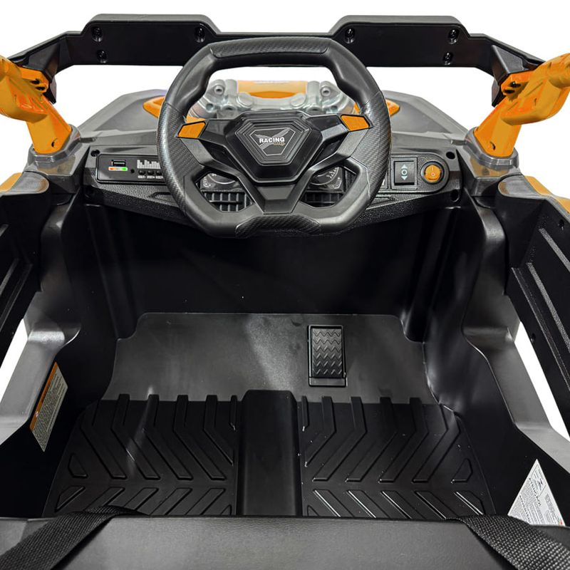 - Direção 2 em 1, pode ser controlado tanto a distância pelo controle remoto, como manualmente pela criança de dentro do veículo.