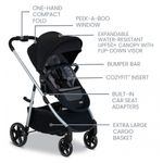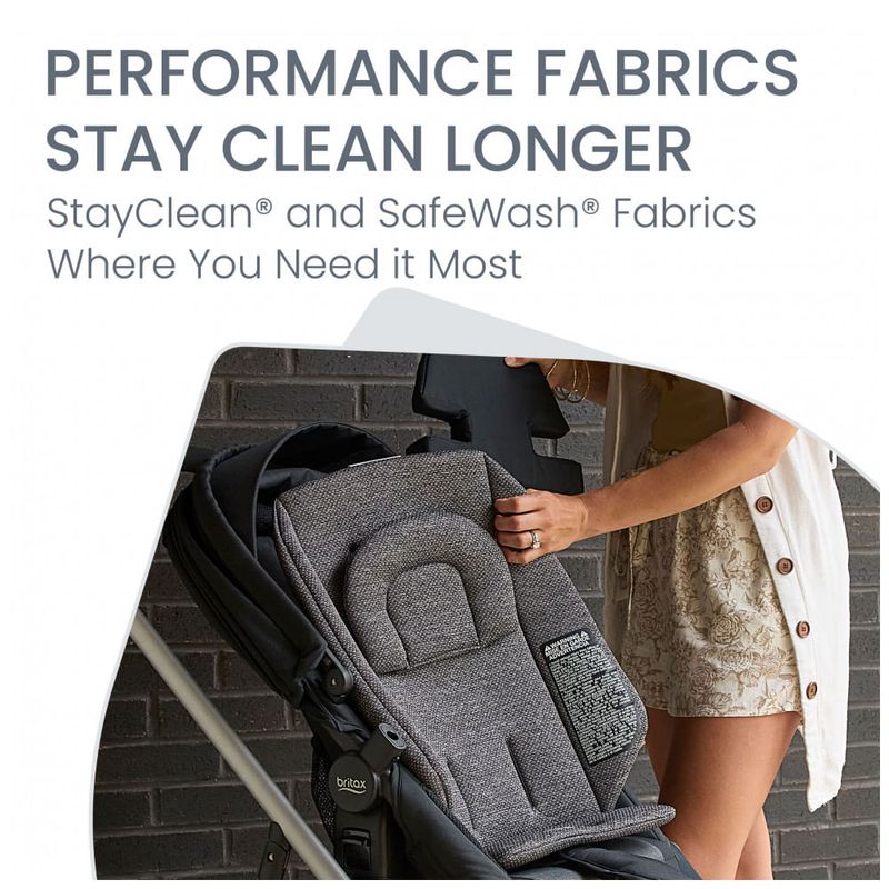 Cochecito modular para bebês Britax Grove es liviano tem 6 formas de usar cojn de material CozyFit com tecido de pontos nix