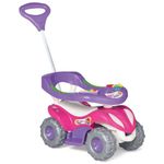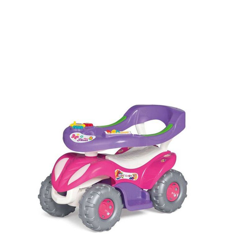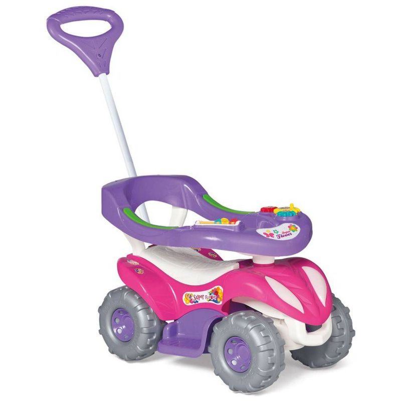 Para a diversão ficar ainda mais completa, basta retirar a proteção e o apoio para os pés, o volante gira e a criança desenvolve os movimentos e a coordenação, dando impulso.