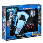 Gira 360 graus, é rádio-controlado e possui luz de led em sua parte inferior. São 5 modelos (vendidos separadamente) com visuais super tecnológicos e radicais. Com apenas um botão pressionado, ele se transforma em um carro ou em robô!
