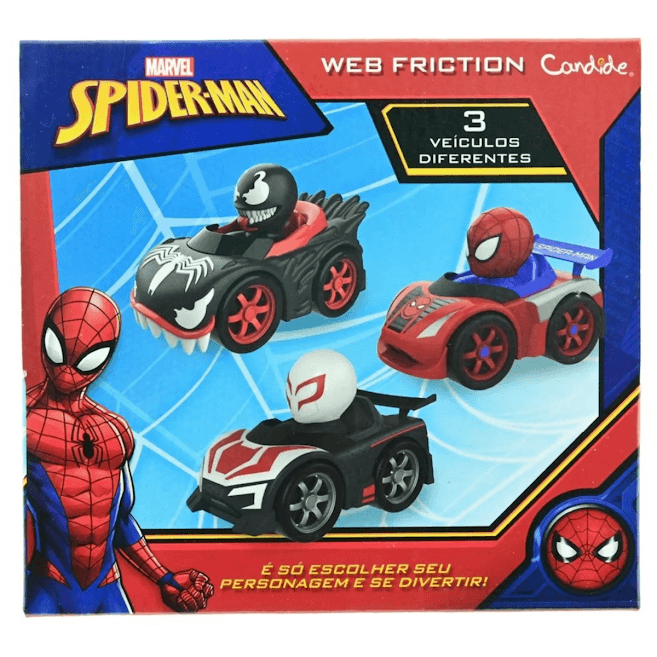 Com o veículo de fricção Web Friction você poderá brincar com seus personagens favoritos! São três modelos para conhecer: o do Homem-Aranha, do Venom e do Gwen-Aranha 2099. A brincadeira vai ficar muito mais radical com o veículo Web Friction!