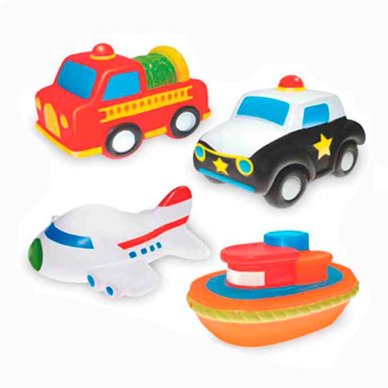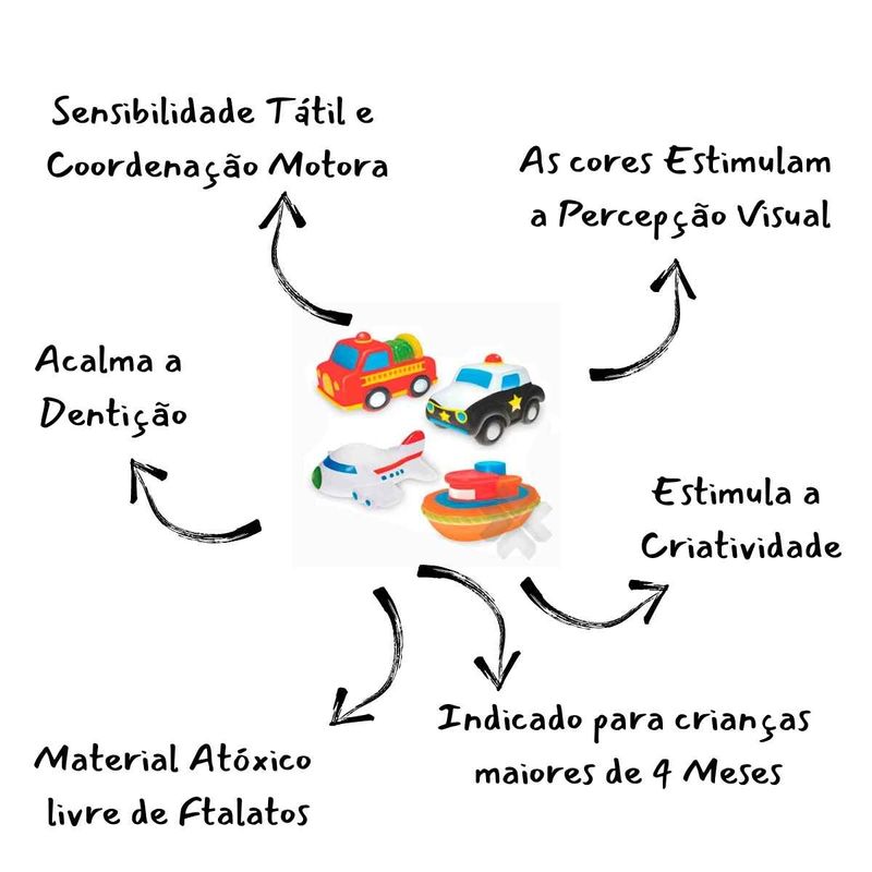 Conteúdo da embalagem: 1 avião, 1 carro de Policia, 1 barco, 1 caminhão de bombeiro