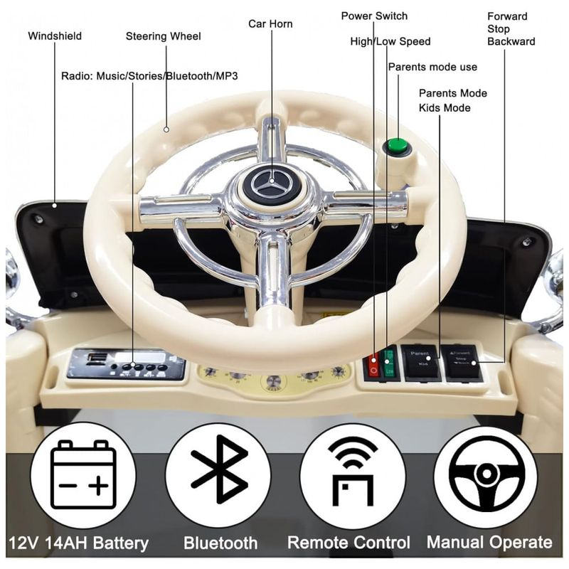 Aparência elegante e qualidade premium este carro de brinquedo é compatível com a Mercedes Benz. Apresentando um design de aparência vintage atraente e clássico, oferece aos seus pequenos prazer de condução superior e diversão real. Fabricado com um corpo de plástico PP durável e certificado pela ASTM F963. Esse é um presente perfeito para seus filhos no aniversário e no festival.