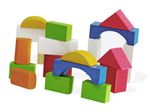 Carrinho com 20 formas geométricas coloridas. Possibilita que a criança empilhe as formas criando objetos ou coloque no carrinho para puxar. O conjunto reforça a criatividade e a capacidade de pensar das crianças estimulando a sua imaginação, coordenação motora e visual, discriminação de cores e quantidades.