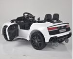 Carro Elétrico Audi R8 Spyder. Produto Licenciado. - Produto indicado para crianças a partir de 3 anos - Bateria recarregável de 12V - Tempo de carregamento: 8 a 12 horas - Velocidade máxima: 3,5km/h - Peso máximo suportado: 25kg - Com controle remoto - Tem luzes e som - Tem função frente e ré e duas funções de velocidade - Produto licenciado Audi - Produto certificado pelo INMETRO e ANATEL MEDIDAS Peso: 14,5kg Altura: 29cm Largura: 56cm Comprimento: 108cm