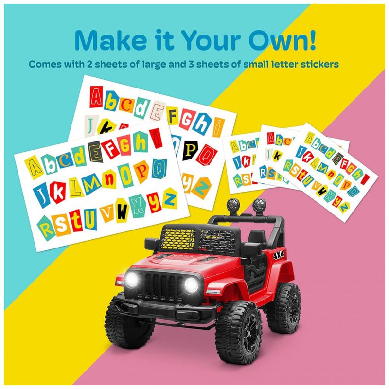 As crianças vão adorar personalizar este brinquedo com sua placa exclusiva. Inclui números DIY, alfabetos e adesivos com símbolos para que seu filho possa ser o orgulhoso proprietário do caminhão mais legal de todos os tempos.